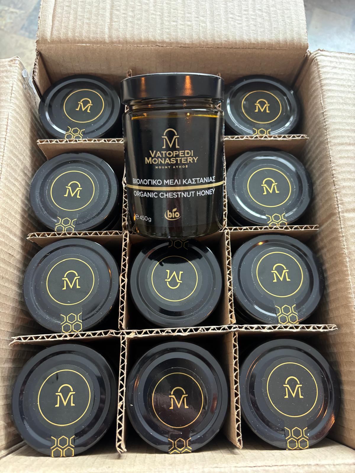 Kastanjehoning is geen doorsnee honing – het is een krachtige, karaktervolle delicatesse met een diepe, donkere kleur en een uitgesproken smaak. Licht bitter, kruidig en vol: kastanjehoning prikkelt de zintuigen en laat een blijvende indruk achter. Afkomstig van het Griekse Vatopedi klooster op Mount-Athos.(UNESCO)